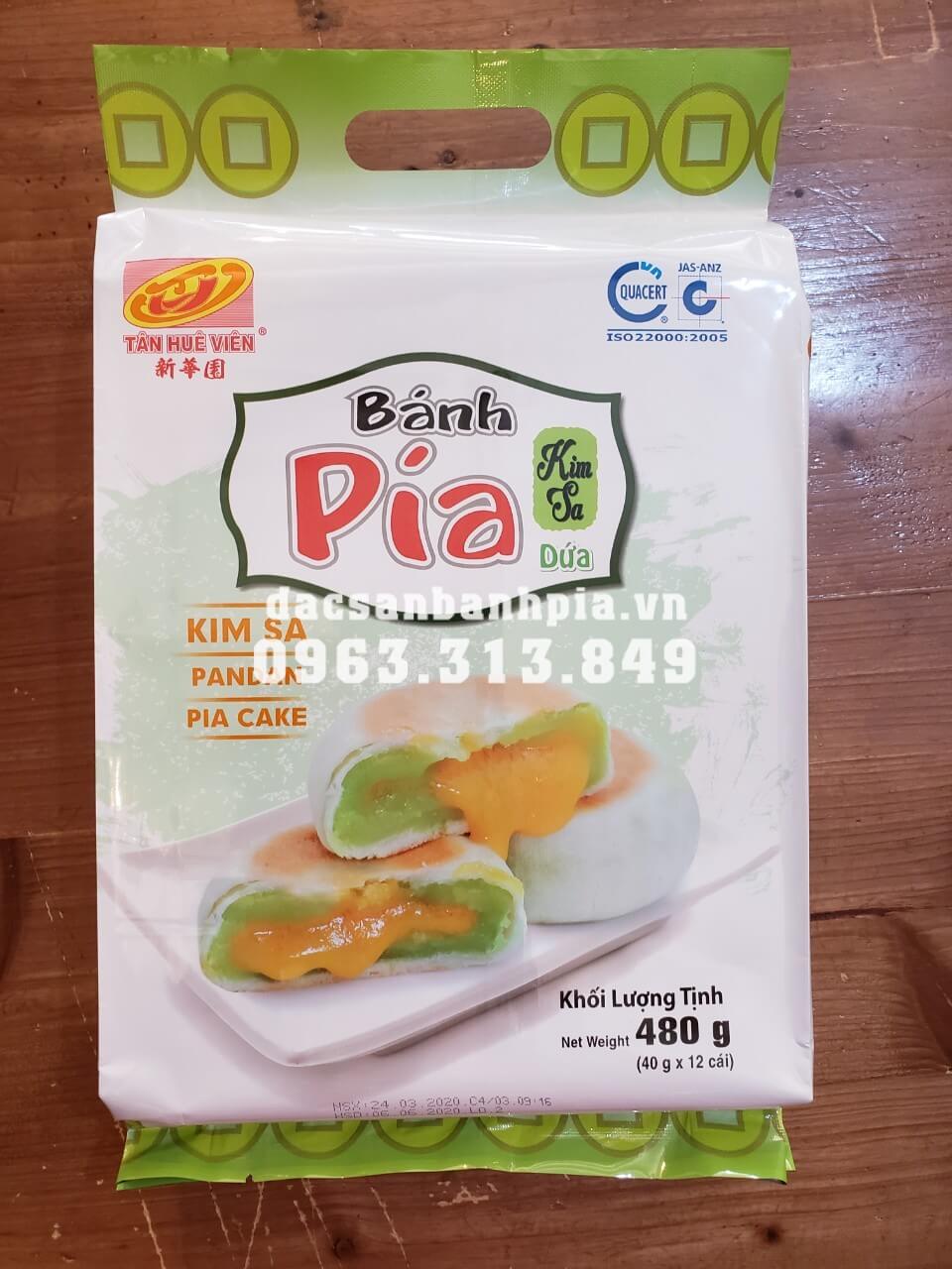 Bánh pía kim sa tan chảy Tân Huê Viên là một trong những dòng sản phẩm bánh pía bán chạy nhất hiện nay của Tân Huê Viên với thành phần chính của bánh làm từ đậu xanh, trứng muối tan chảy kết hợp cùng nhau tạo nên hương vị độc đáo tan chảy như cát vàng